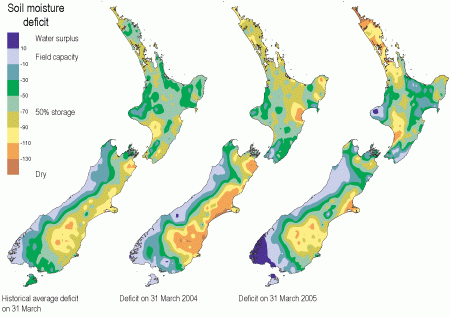 Soil moisture deficit in the pasture root zone at the end of March.
