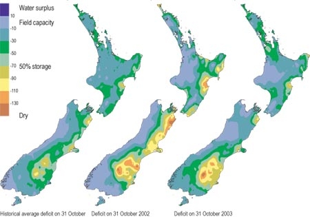 Soil moisture deficit in the pasture root zone at the end of October.