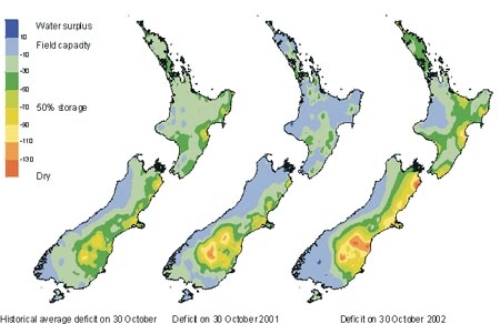 Soil moisture deficit in the pasture root zone at the end of October.