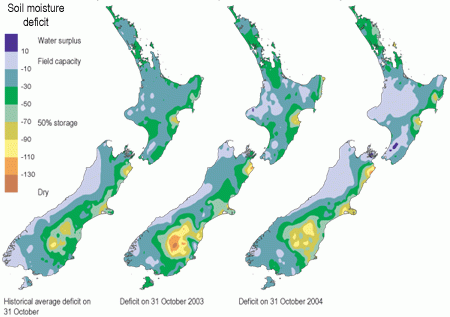 Soil moisture deficit in the pasture root zone at the end of October.