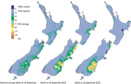Soil moisture deficit in the pasture root zone at the end of September.