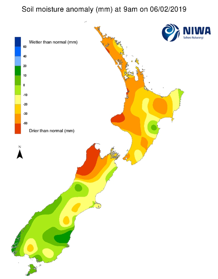 Soil moisture anomaly (mm) map at 9:00am on 6 February 2019.