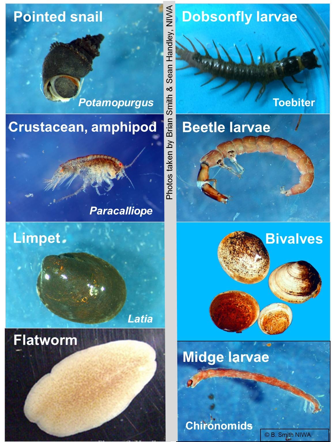Some common stream invertebrates found in NZ waterways. Credit: Brian Smith, NIWA