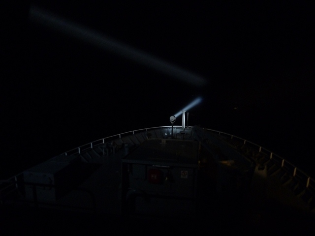 Spotlight on the bow of the ship.