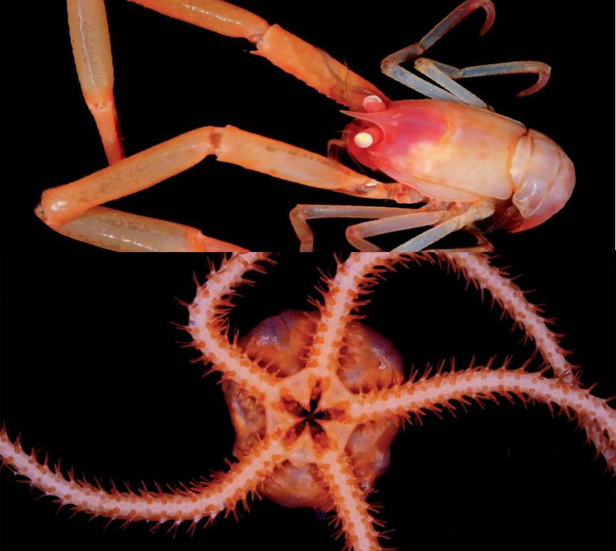 A squat lobster and brittle star sampled during Tangaroa's Kermadec voyage. Credit: Rob Stewart