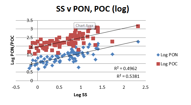 Relationship between suspended sediment concentrations and (1) particulate organic nitrogen and (2) particulate organic carbon.