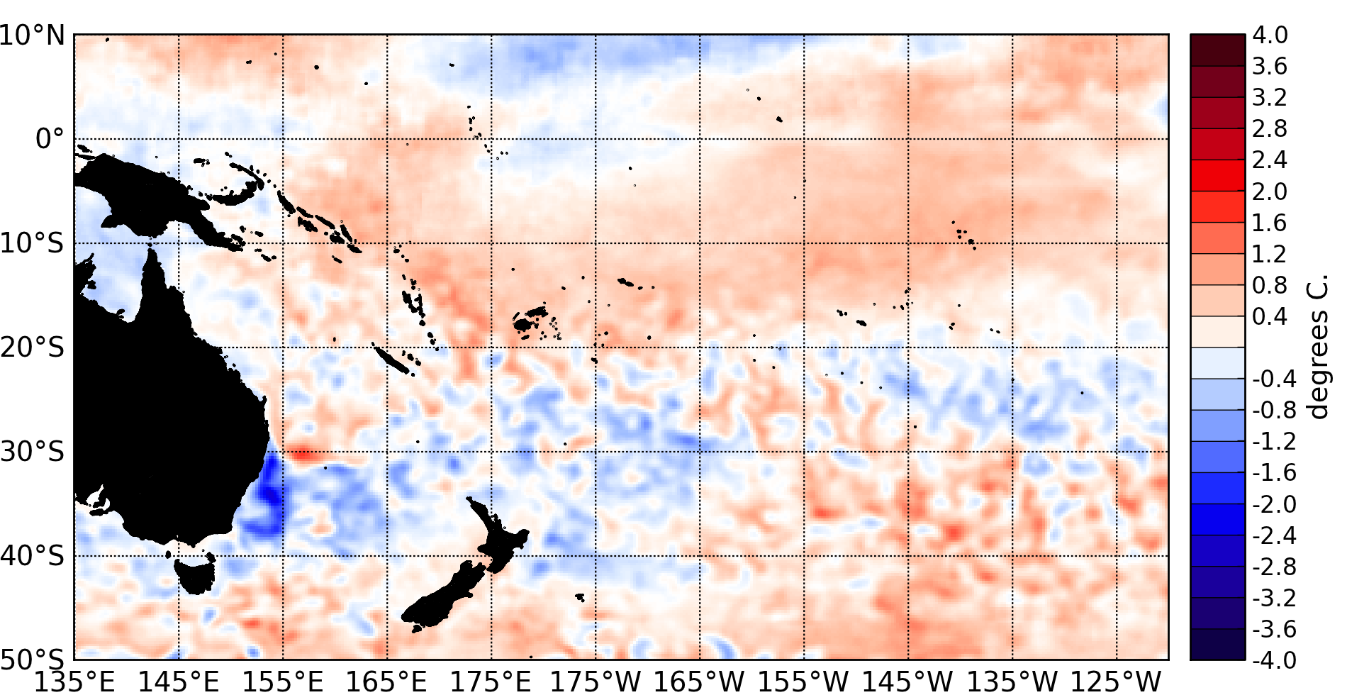 SST anomalies (°C) for September 2012, data is from the NOAA OISST Version 2 dataset, available at the CDC