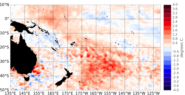 Surface temperature anomalies (ºC) for October 2013, data is from the NOAA OISST Version 2 dataset, available at the NOAA’s Climate Data Center (ftp.cdc.noaa.gov/Datasets/noaa.oisst.v2.highres).