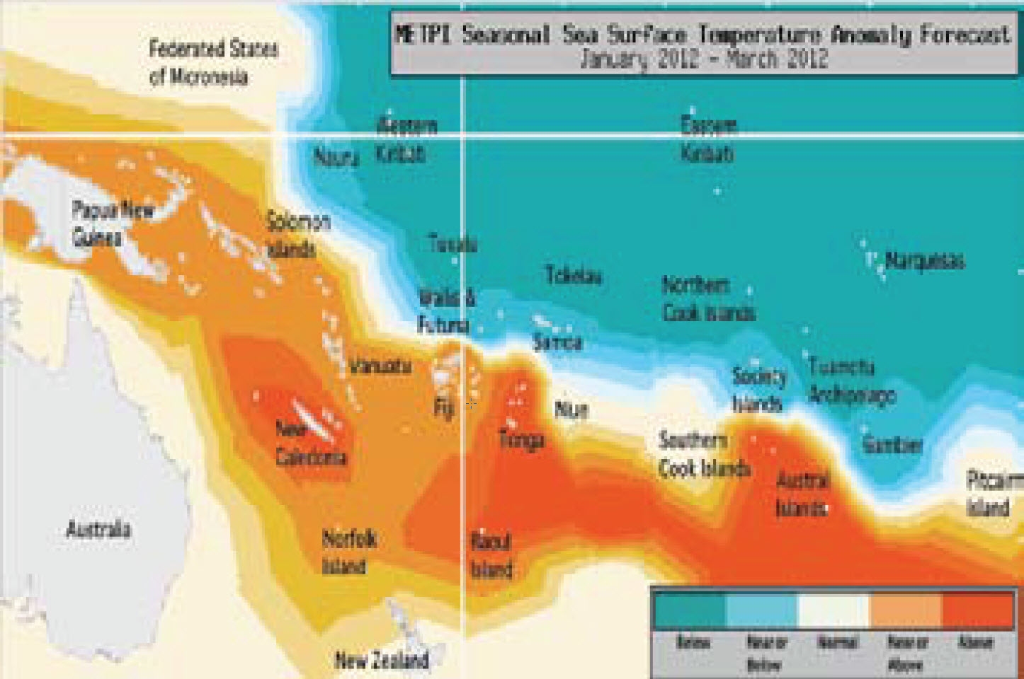 SST anomaly outlook map for January to March 2012