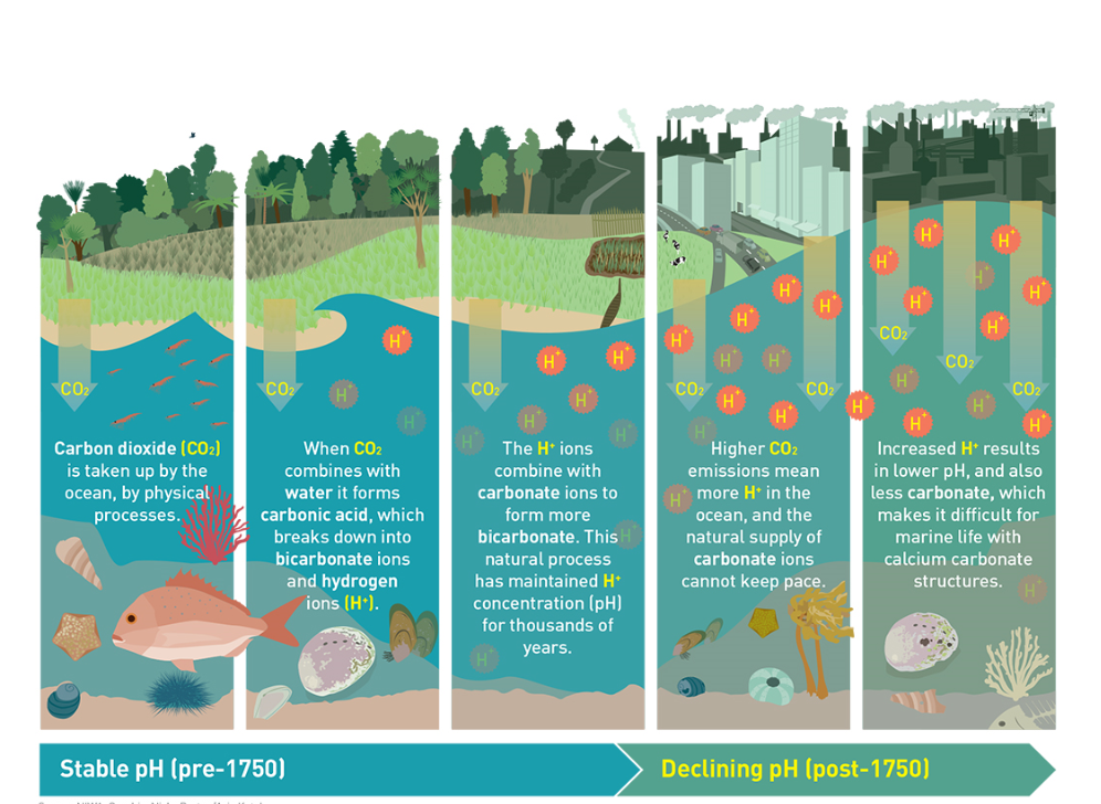 The chemistry of acidification - how increasing CO2 leads to ocean acidification.