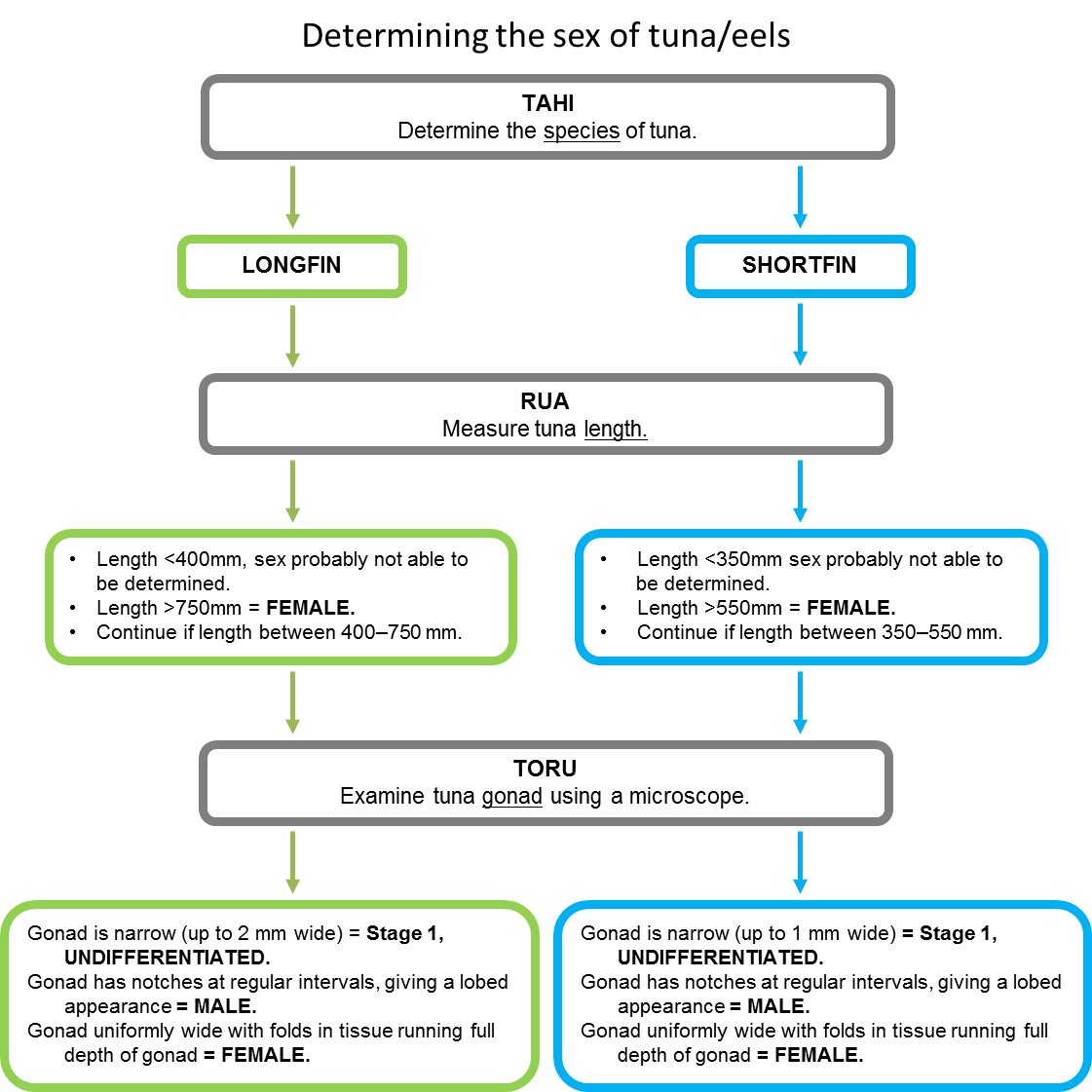 A step-by-step guide to help determine the sex of tuna. Credit: NIWA