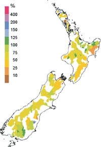 Streamflow decile ranges in April 2002 for rivers monitored in national and regional networks