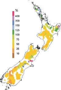 Streamflow decile ranges in April 2003 for rivers monitored in national and regional networks