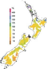 Streamflow decile ranges in January 2003 for rivers monitored in national and regional networks
