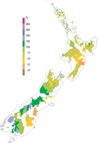 Streamflow decile ranges in July 2003 for rivers monitored in national and regional networks