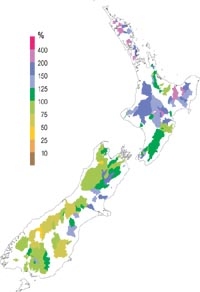 Streamflow decile ranges in October 2003 for rivers monitored in national and regional networks
