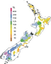 Streamflow decile ranges in September 2002 for rivers monitored in national and regional networks