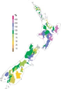 Streamflow decile ranges in September 2003 for rivers monitored in national and regional networks