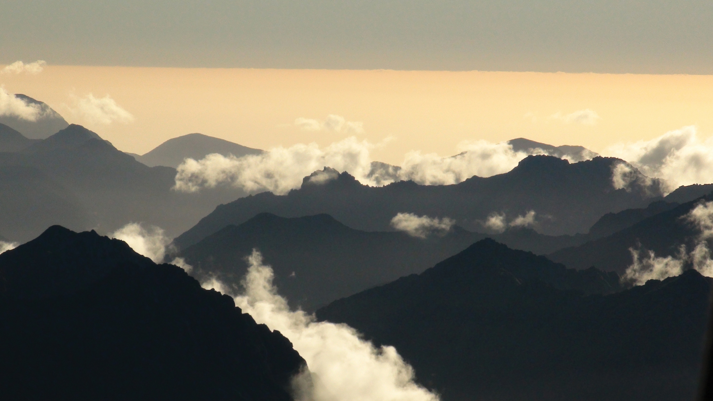 Category winner – Land, water and skyscapes. Sunset over Castle Mount Snow Station, above the Clinton Valley and Milford Track, Fiordland. Credit: Evan Baddock