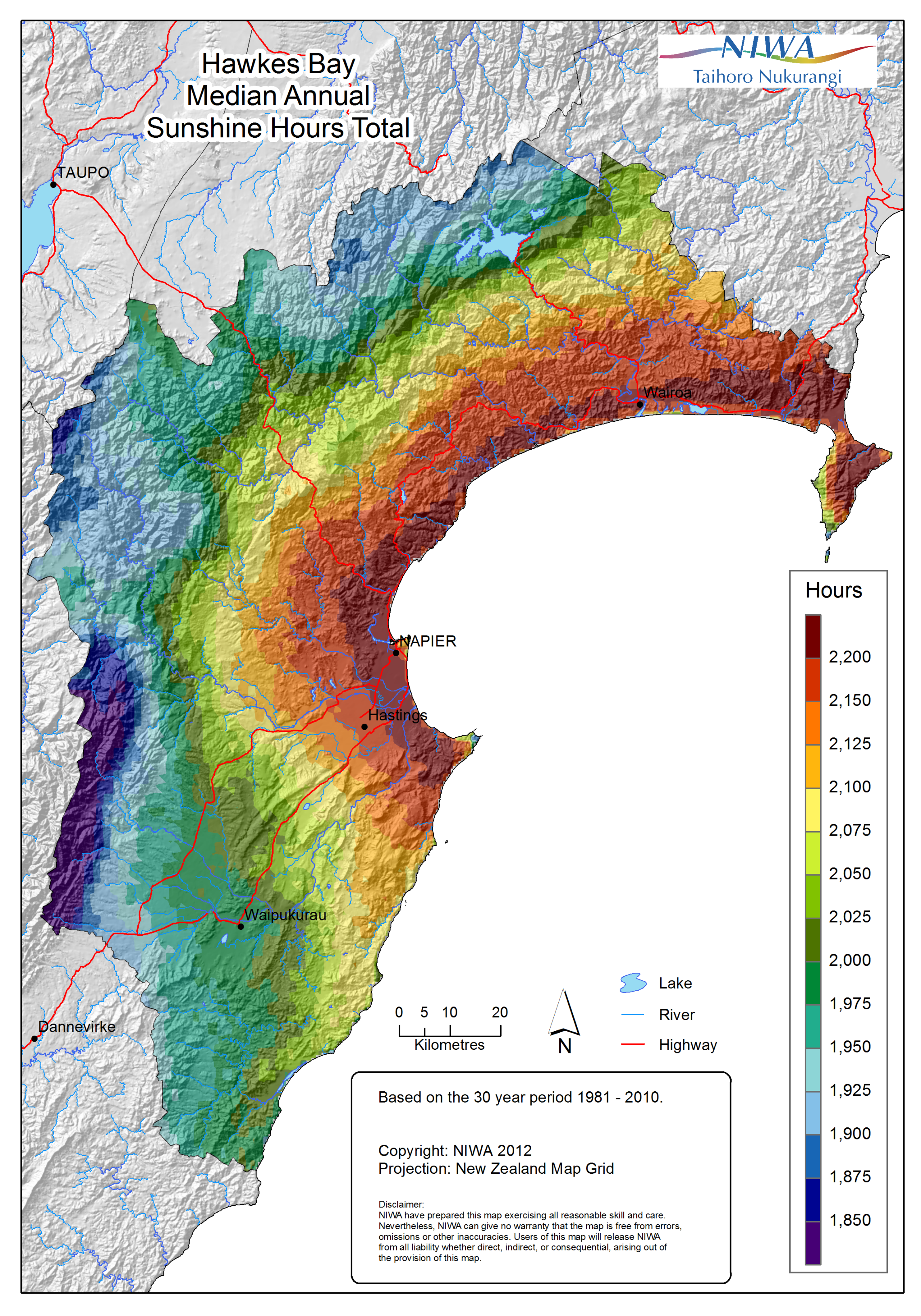 Hawkes Bay - Median annual sunshine hours