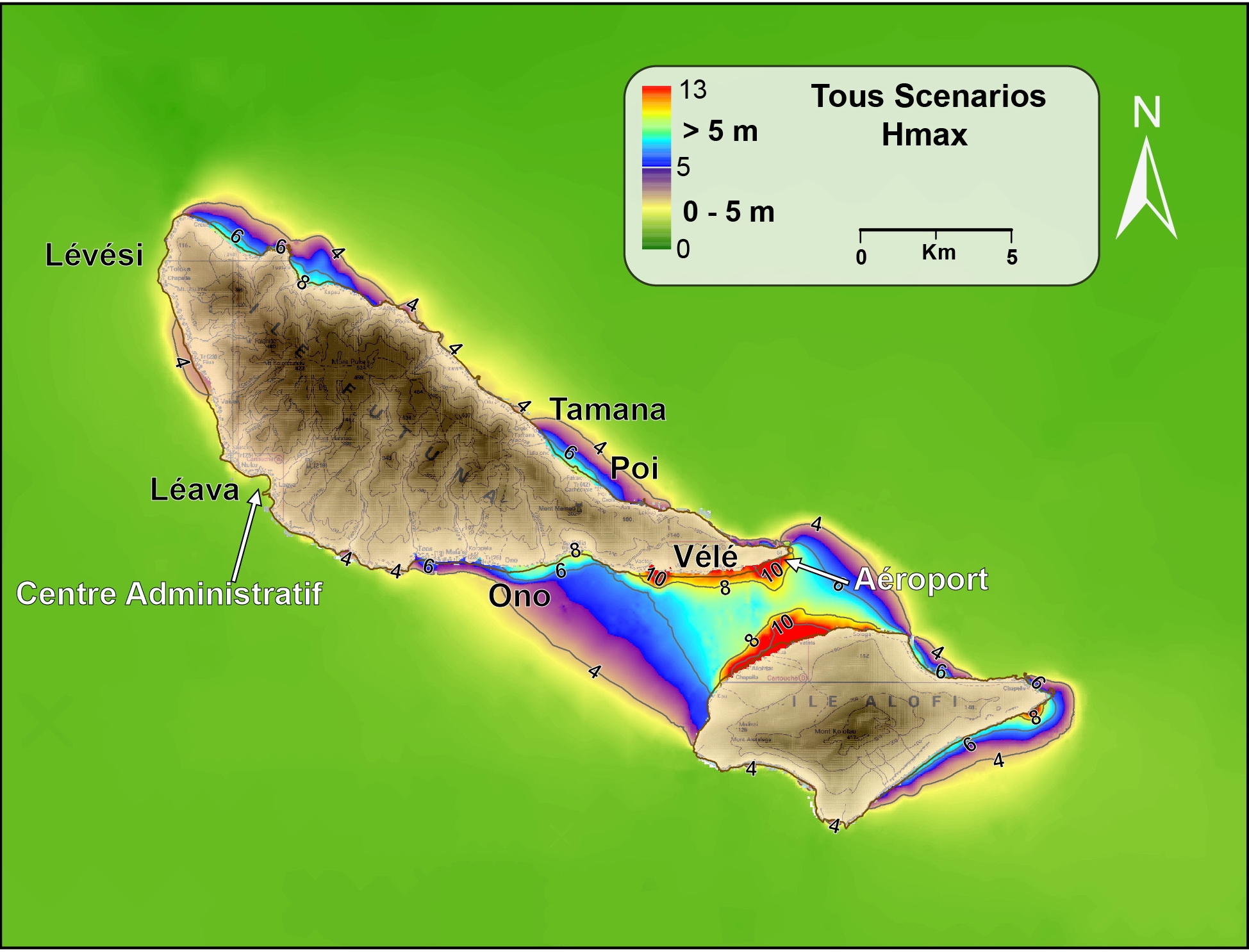 Fig. 3: Synthesis of all modelled Maximum Wave Elevations at Futuna.