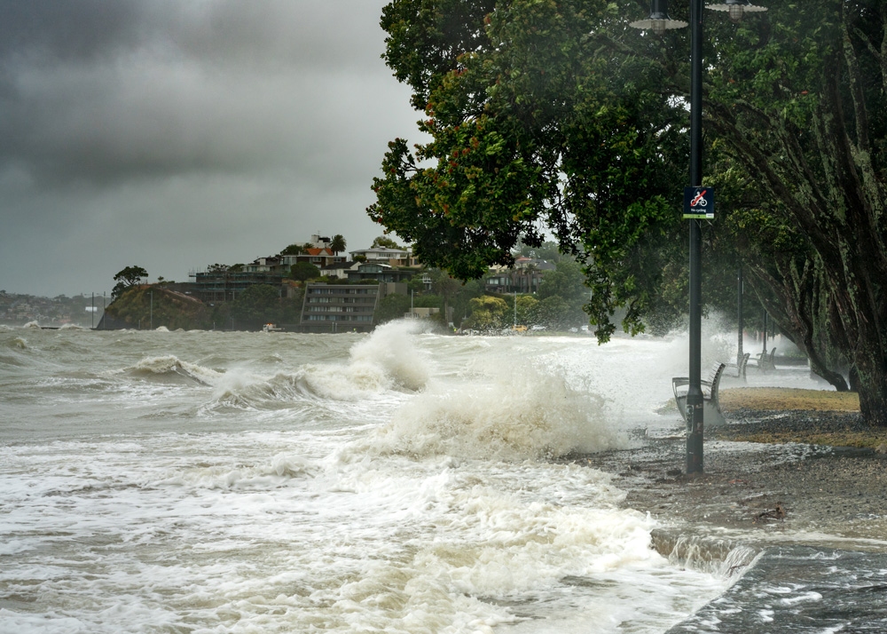 Tamaki Drive Auckland Flooding January 5 2018 as storm and King tides meet.