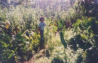 The taro (the broad-leaved plant) is an example of adaptation to local conditions.