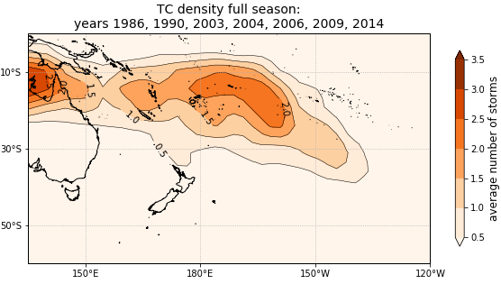 Tropical cyclone density full season for years: 1886, 1990, 2003, 2004, 2006, 2009, 2014