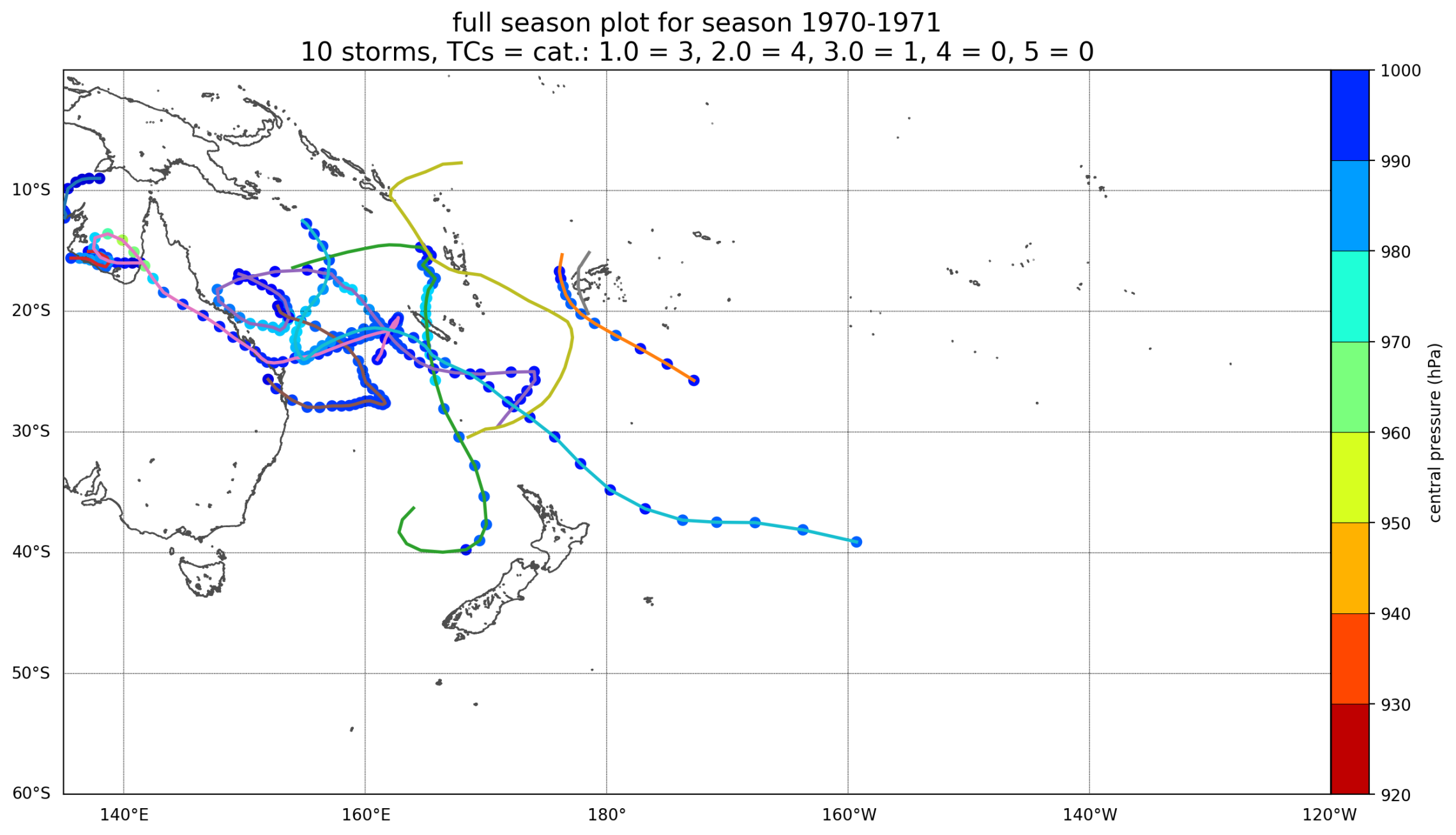 Tropical cyclone full season plot for season 1970-1971
