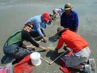 A team sets up a trial on the sandflats at Whangarei Harbour. (Photos: Vonda Cummings, NIWA)