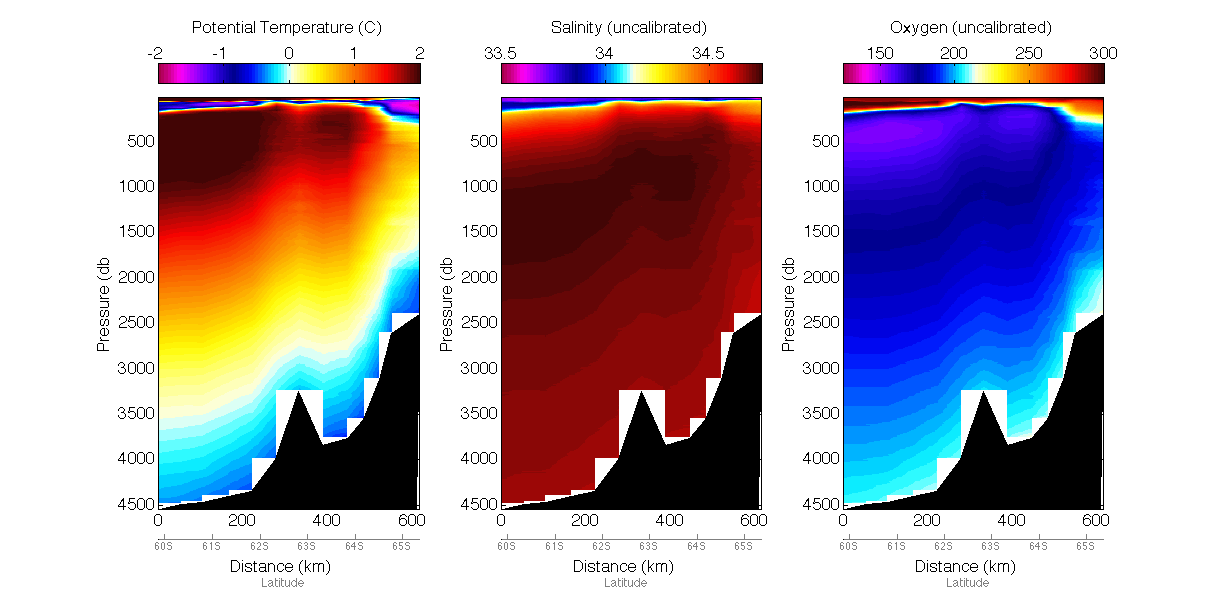 Temperature, salinity and oxygen data from the SR3 section.