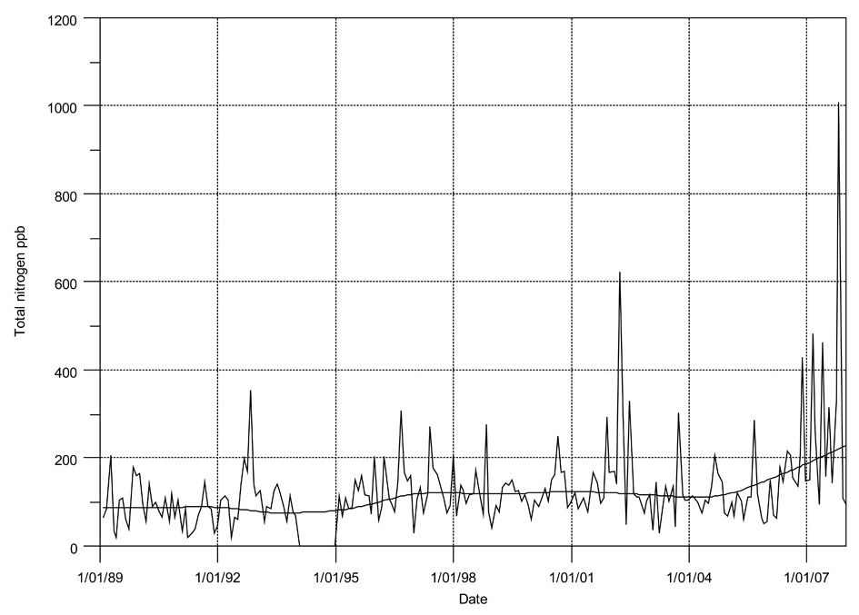 Total nitrogen on the Waimakariri (above old highway bridge) near Christchurch.
