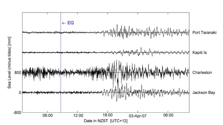 Gizo (Solomon Islands) tsunami: Mw 8.1 2040 UTC 1–Apr–2007 New Zealand sea-level gauges on west coast.
