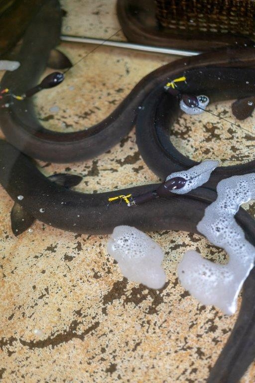 Tuna caught in the Waikato River, tagged ahead of their migration.