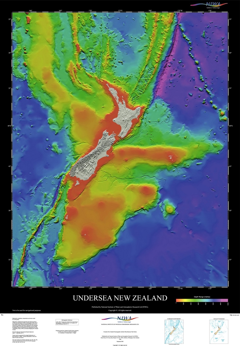 This is a special edition, high quality colour poster that vividly illustrates the variability and complexity of the New Zealand ocean floor. This award-winning publication has proven to be extremely popular for scientific, educational, and general use. Published in 1996, the poster covers the whole New Zealand region at a scale of 1:4,000,000.