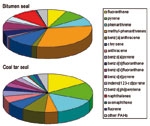 Unique fingerprints: comparison of the PAHs in a bitumen layer and a tar seal layer.