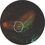 VIFE implant (circled) appears bright orange under blue light. (Photo: Graeme Moss)