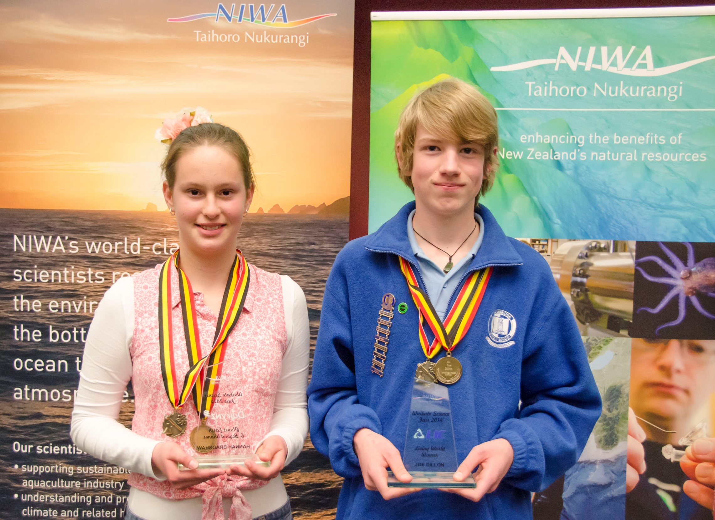Waikato Premier Award winner Hannah Bradshaw and runner-up Joe Dillon.