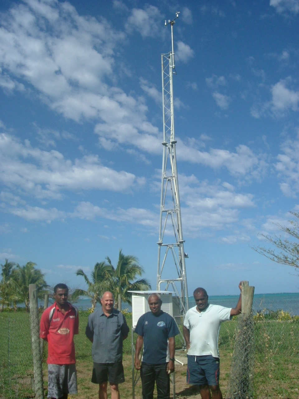 Josefa Vodo, Andrew Harper, Len Bale and Uraia Tuilovoni stand in front of a completed weather station Photo: A Chandra (FMS)