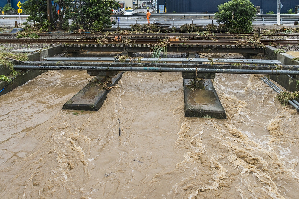 Data from the regional council showed parts of Wellington recording the heaviest hourly rainfall in more than 50 years on 14 May 2015. Drainage systems struggled to cope, causing disruption to major transport routes around the city and the Kapiti Coast. Photograph by Dave Allen on 14 May 2015.