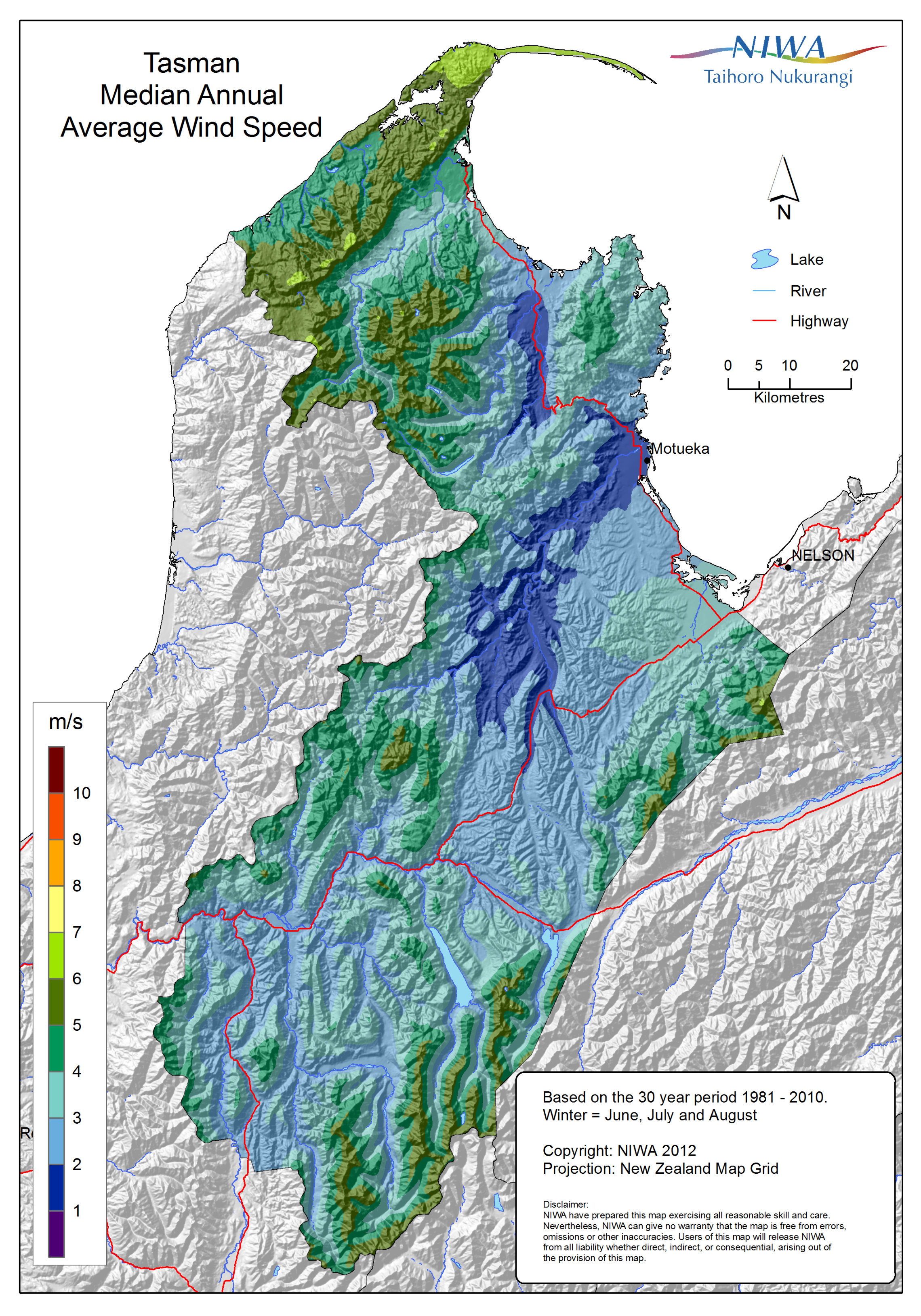 Tasman - Median annual average wind speed