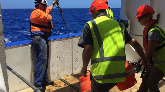 Wire deployed corer floats being retrieved