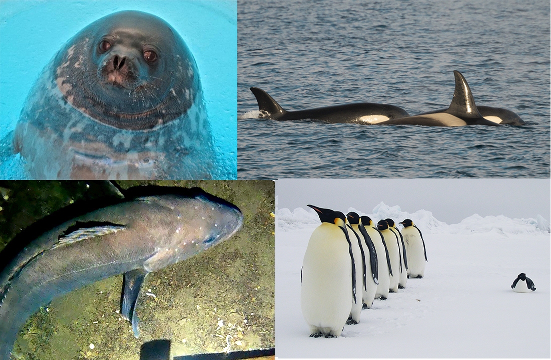 Weddell seal, orca, toothfish, emperor penguins