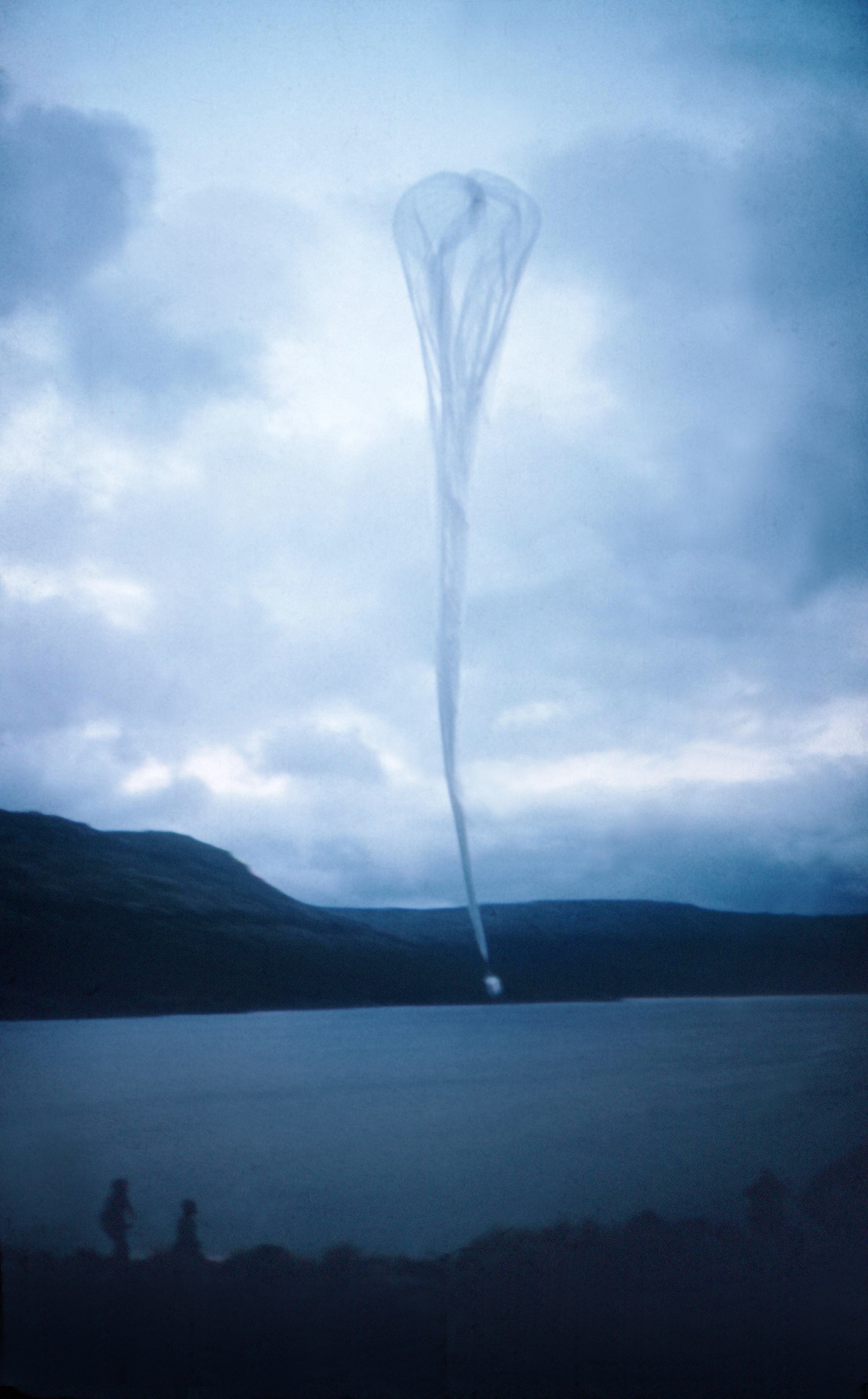 A balloon-borne Ph5 x-ray detector package is released from Campbell Island, January 1970.