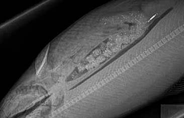 X-ray image of ballotini beads in eaten feed