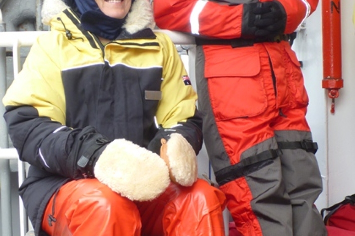 Kate Berry and Anne Waterhouse in their Antarctic gear