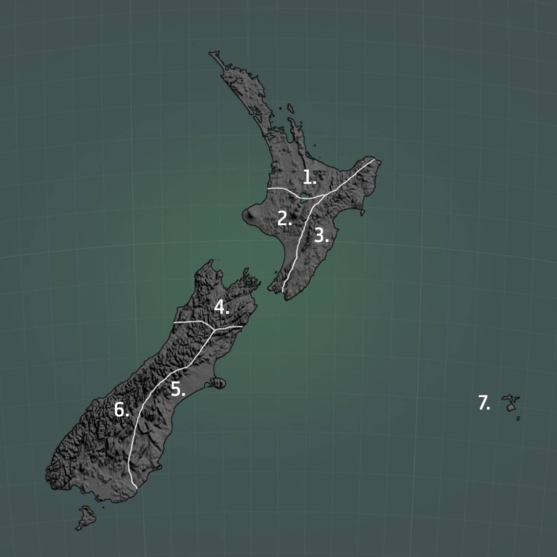Eastern lower North Island extends from Hicks Bayto Palliser Bay and back to the Ruahine and Kaweka ranges. Includes Gisborne, Hawke’s Bay and the Wairarapa catchment of Wellington.