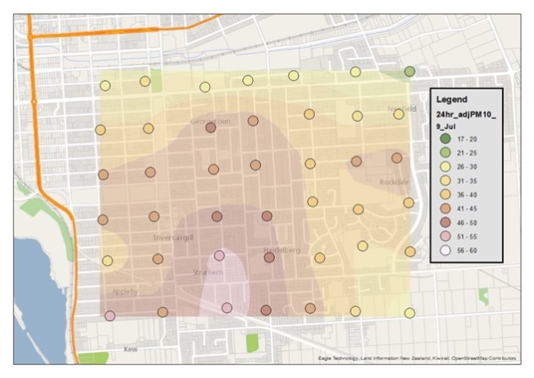 NIWA is a pioneer in using dense grids of new-generation air monitors to create detailed maps of air quality. We use monitors that measure particulate matter levels (PM10 and PM2.5) every 20 minutes or faster, sending data to the cloud via the mobile phone network.