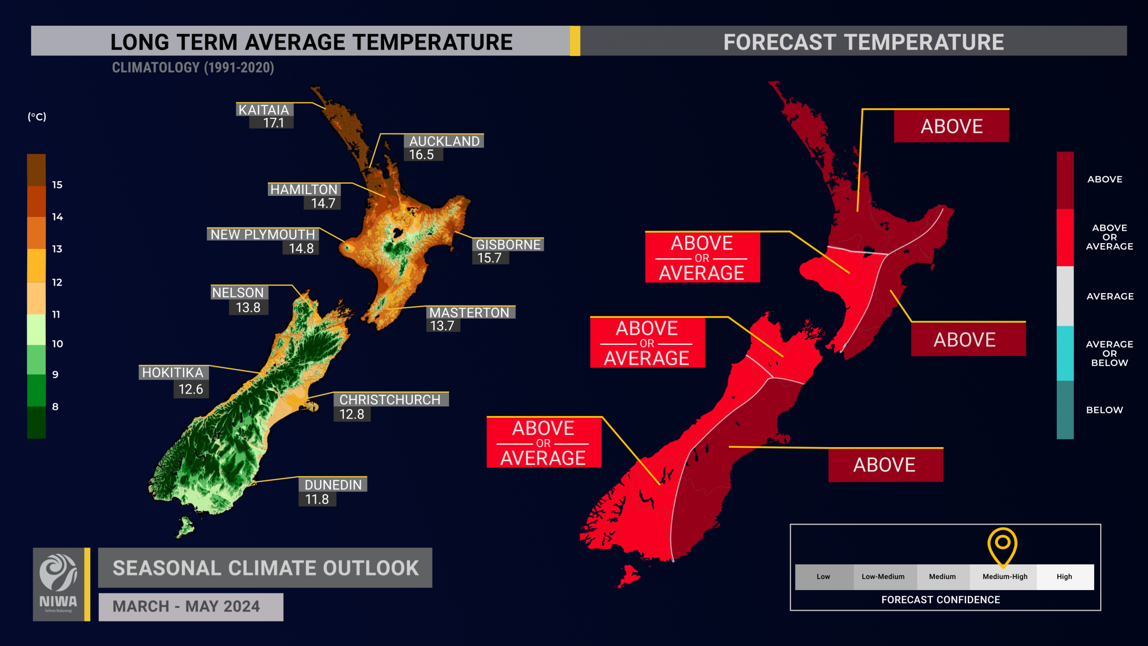 - Autumn wind strength is likely to be above normal in the South Island and lower North Island, with a strong wind event forecast for the first week of March.