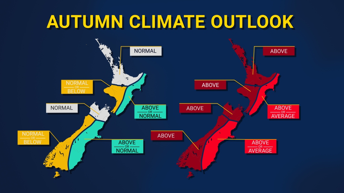 - Overall, a mix of anticyclonic flows and easterly quarter flows are expected over New Zealand over the autumn season.